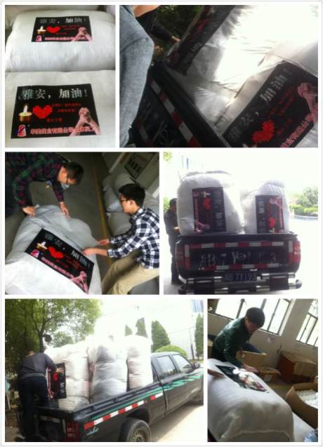 为了让灾区人民得到实实在在的温暖,华美员工关爱中心用捐款购买了“维科磨毛春秋被”186条,华美工会另代表全体员工捐赠两箱空调被(24条),承载着华美人祝福的车队,披星戴月火速启程送往灾区。目前,满载华美祝福的210条被子已经到达雅安。大灾无情,华美有义,企业的一份绵薄之力,传递的是一份温暖爱心。