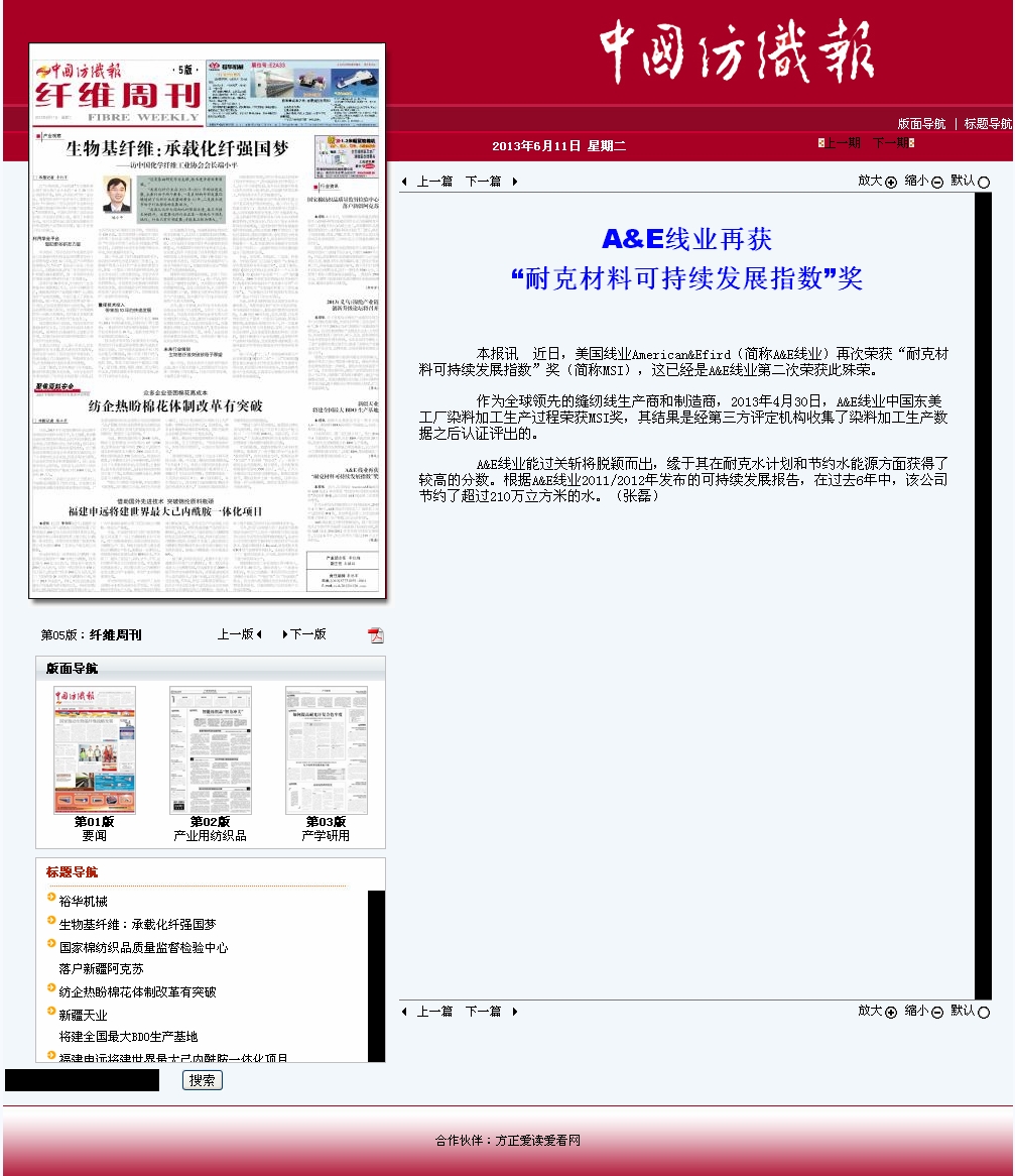 2013年6月,《中国纺织报》撰文关注A&E线业。