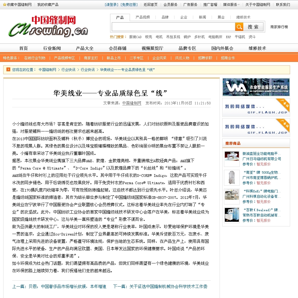 中国缝制网是为服装生产企业及缝制设备行业提供制衣设备信息、贸易商务服务的专业门户网站;是缝制设备厂商的网络销售和品牌推广的服务平台。