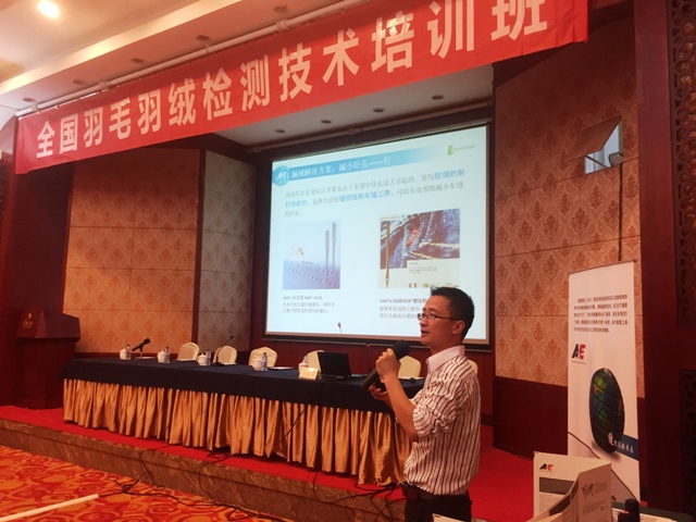 自1968年世界第一件羽绒服诞生后,美国线业就致力于防漏绒线的研发测试,迄今防漏绒解决方案已经应用在众多国际知名羽绒服品牌的缝纫上。5月6日,在中国服装协会主办的全国羽毛羽绒检测培训班上,美国线业技术经理王志忠先生专门针对羽绒服品牌公司的切肤之痛,作了关于“羽绒服钻绒&渗油解决方案”的主题演讲,向大家分享了多年来总结的解决方案。讲座吸引了现场波司登、雅鹿、雁皇、艾莱依、鸭鸭、海澜之家、江南布衣、耶莉娅等多家公司代表的关注,他们纷纷表示获益良多。